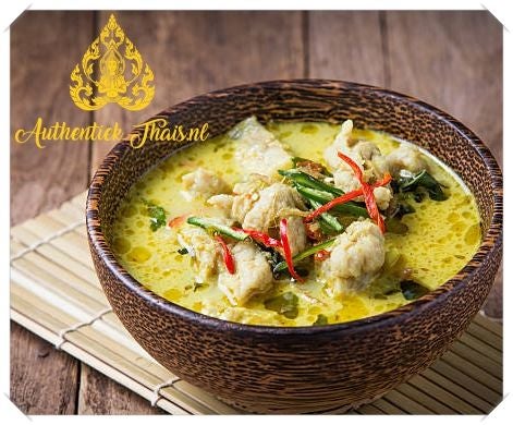 THAIS GROENE CURRY MET (.............), MIX AUBERGINES, CITROENBLAD, MIX GROENTEN, CITROENGRAS, BAMBOESCHEUTEN EN ZOETE BASILICUM IN KOKOSMELK.